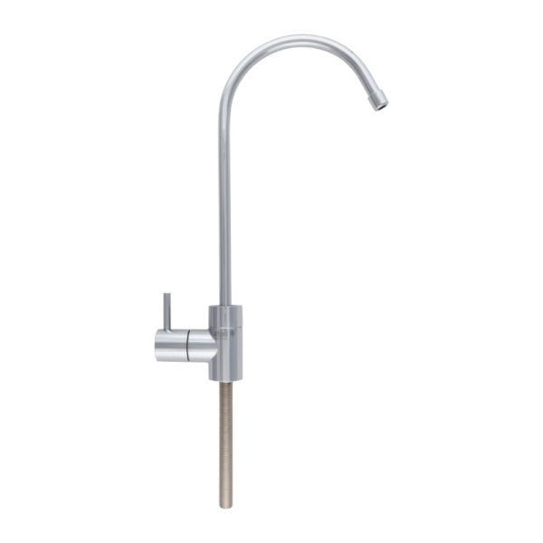 Кран, входящий в комплектацию систем обратного осмоса, производится из высококачественного металла, на который нанесено хромированное покрытие. Это обеспечивает устойчивость к коррозии и придает крану эстетический вид.